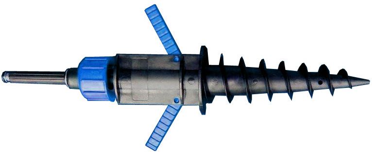 Kunststoff-Bodendübel zum Einschrauben in losen Untergrund wie Sand oder Kies. Mit Rotator für freie Rotation der Beachflag.