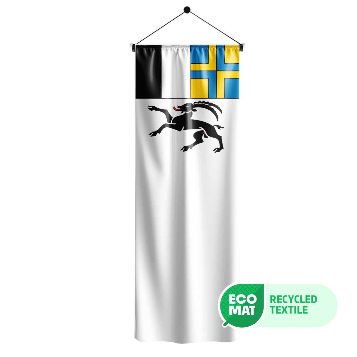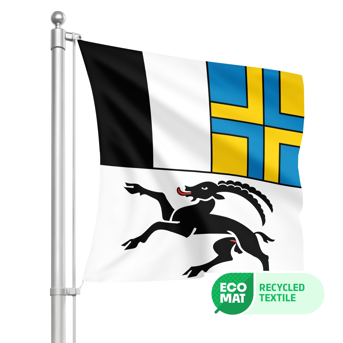 ECO-Fahnen - Nachhaltigkeit und Qualität vereintUnsere ECO-Fahnen bestehen aus umweltfreundlichem Fahnenstoff, der zu 100% aus recycelten PET-Flaschen gefertigt wird. Diese nachhaltigen Fahnen sind in den Grössen 80x80cm, 100x100cm, 120x120cm, 150x150cm, 200x200cm, 250x250cm und 300x300cm erhältlich und bieten eine hervorragende Druckqualität, die auf beiden Seiten sichtbar ist (Spiegeleffekt).Material: ECO-Glans (PVC-frei) 115g/m² – B1 Brandschutz-zertifiziert nach DIN 4102, schwer entflammbar und selbstverlöschend.Umweltfreundlich: ÖKO-Tex® 100 zertifiziert, PVC-frei und ideal für umweltbewusste Käufer.ECO-Fahnen sind besonders leicht und UV-beständig, was sie ideal für den Ausseneinsatz macht. Sie sind zudem waschbar bei 30°C und durch ihre hervorragende Verarbeitung extrem langlebig. Setzen Sie ein Zeichen für Nachhaltigkeit und bestellen Sie Ihre ECO-Fahne noch heute!Empfohlene Fahnengrössen je nach MastlängeDie richtige Fahnengröße ist entscheidend für die perfekte Präsentation Ihrer Fahne. Nutzen Sie unsere Empfehlungen, um die ideale Größe für Ihre Fahne auszuwählen, passend zur Höhe Ihres Fahnenmasts:Für Masten bis 5,8 m: Wir empfehlen eine Fahne mit den Massen 120x120 cm.Für Masten mit 7 bis 8 m Höhe: Eine Fahne der Grösse 150x150 cm ist optimal.Für Masten bis 10 m: Wählen Sie eine Fahne in der Grösse 200x200 cm.Für Masten bis 12 m: Die ideale Grösse für Ihre Fahne ist 250x250 cm.Diese Empfehlungen sorgen dafür, dass Ihre Fahne nicht nur gut sichtbar ist, sondern auch perfekt im Wind weht und einen eleganten Eindruck hinterlässt. Bestellen Sie Ihre Fahne jetzt in der passenden Grösse für Ihren Fahnenmast!