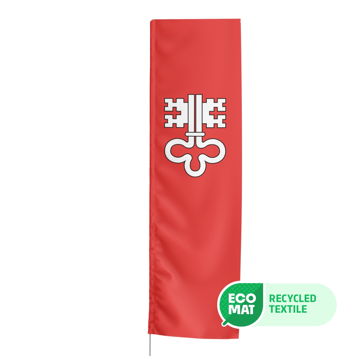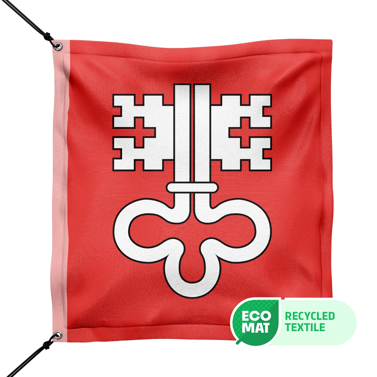 ECO-Fahnen - Nachhaltigkeit und Qualität vereintUnsere ECO-Fahnen bestehen aus umweltfreundlichem Fahnenstoff, der zu 100% aus recycelten PET-Flaschen gefertigt wird. Diese nachhaltigen Fahnen sind in den Grössen 80x80cm, 100x100cm, 120x120cm, 150x150cm, 200x200cm, 250x250cm und 300x300cm erhältlich und bieten eine hervorragende Druckqualität, die auf beiden Seiten sichtbar ist (Spiegeleffekt).Material: ECO-Glans (PVC-frei) 115g/m² – B1 Brandschutz-zertifiziert nach DIN 4102, schwer entflammbar und selbstverlöschend.Umweltfreundlich: ÖKO-Tex® 100 zertifiziert, PVC-frei und ideal für umweltbewusste Käufer.ECO-Fahnen sind besonders leicht und UV-beständig, was sie ideal für den Ausseneinsatz macht. Sie sind zudem waschbar bei 30°C und durch ihre hervorragende Verarbeitung extrem langlebig. Setzen Sie ein Zeichen für Nachhaltigkeit und bestellen Sie Ihre ECO-Fahne noch heute!Empfohlene Fahnengrössen je nach MastlängeDie richtige Fahnengröße ist entscheidend für die perfekte Präsentation Ihrer Fahne. Nutzen Sie unsere Empfehlungen, um die ideale Größe für Ihre Fahne auszuwählen, passend zur Höhe Ihres Fahnenmasts:Für Masten bis 5,8 m: Wir empfehlen eine Fahne mit den Massen 120x120 cm.Für Masten mit 7 bis 8 m Höhe: Eine Fahne der Grösse 150x150 cm ist optimal.Für Masten bis 10 m: Wählen Sie eine Fahne in der Grösse 200x200 cm.Für Masten bis 12 m: Die ideale Grösse für Ihre Fahne ist 250x250 cm.Diese Empfehlungen sorgen dafür, dass Ihre Fahne nicht nur gut sichtbar ist, sondern auch perfekt im Wind weht und einen eleganten Eindruck hinterlässt. Bestellen Sie Ihre Fahne jetzt in der passenden Grösse für Ihren Fahnenmast!