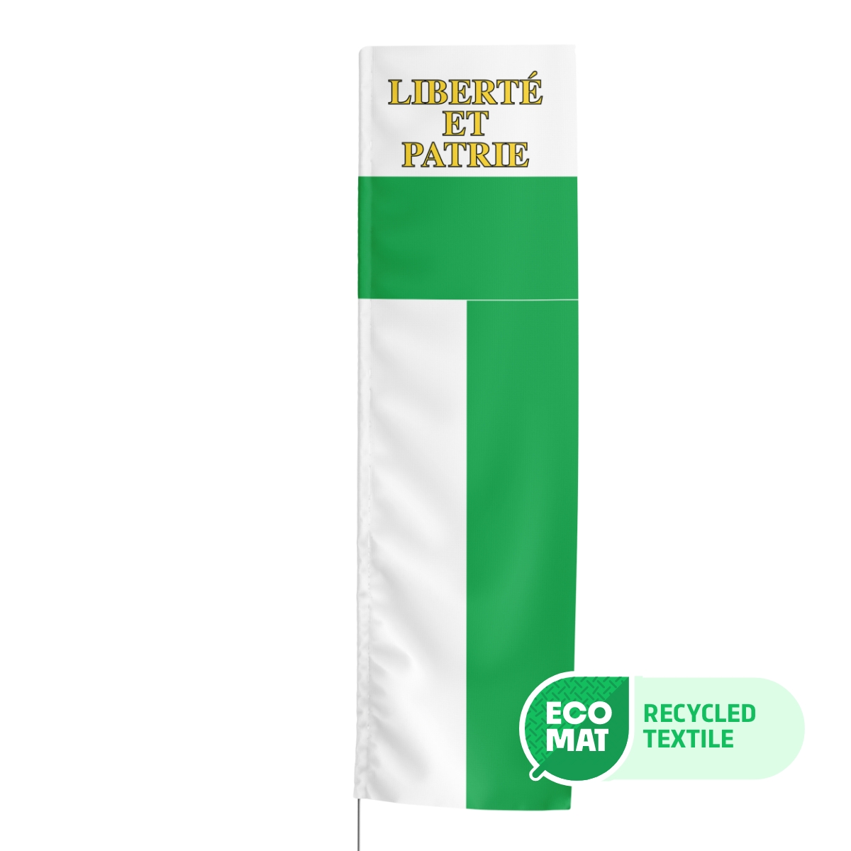 ECO-Fahnen - Nachhaltigkeit und Qualität vereintUnsere ECO-Fahnen bestehen aus umweltfreundlichem Fahnenstoff, der zu 100% aus recycelten PET-Flaschen gefertigt wird. Diese nachhaltigen Fahnen sind in den Grössen 80x80cm, 100x100cm, 120x120cm, 150x150cm, 200x200cm, 250x250cm und 300x300cm erhältlich und bieten eine hervorragende Druckqualität, die auf beiden Seiten sichtbar ist (Spiegeleffekt).Material: ECO-Glans (PVC-frei) 115g/m² – B1 Brandschutz-zertifiziert nach DIN 4102, schwer entflammbar und selbstverlöschend.Umweltfreundlich: ÖKO-Tex® 100 zertifiziert, PVC-frei und ideal für umweltbewusste Käufer.ECO-Fahnen sind besonders leicht und UV-beständig, was sie ideal für den Ausseneinsatz macht. Sie sind zudem waschbar bei 30°C und durch ihre hervorragende Verarbeitung extrem langlebig. Setzen Sie ein Zeichen für Nachhaltigkeit und bestellen Sie Ihre ECO-Fahne noch heute!Empfohlene Fahnengrössen je nach MastlängeDie richtige Fahnengröße ist entscheidend für die perfekte Präsentation Ihrer Fahne. Nutzen Sie unsere Empfehlungen, um die ideale Größe für Ihre Fahne auszuwählen, passend zur Höhe Ihres Fahnenmasts:Für Masten bis 5,8 m: Wir empfehlen eine Fahne mit den Massen 120x120 cm.Für Masten mit 7 bis 8 m Höhe: Eine Fahne der Grösse 150x150 cm ist optimal.Für Masten bis 10 m: Wählen Sie eine Fahne in der Grösse 200x200 cm.Für Masten bis 12 m: Die ideale Grösse für Ihre Fahne ist 250x250 cm.Diese Empfehlungen sorgen dafür, dass Ihre Fahne nicht nur gut sichtbar ist, sondern auch perfekt im Wind weht und einen eleganten Eindruck hinterlässt. Bestellen Sie Ihre Fahne jetzt in der passenden Grösse für Ihren Fahnenmast!