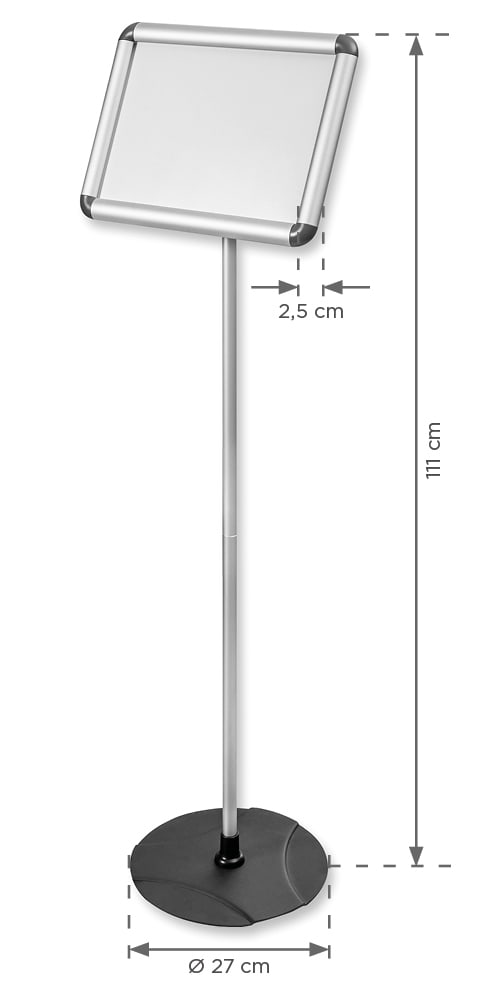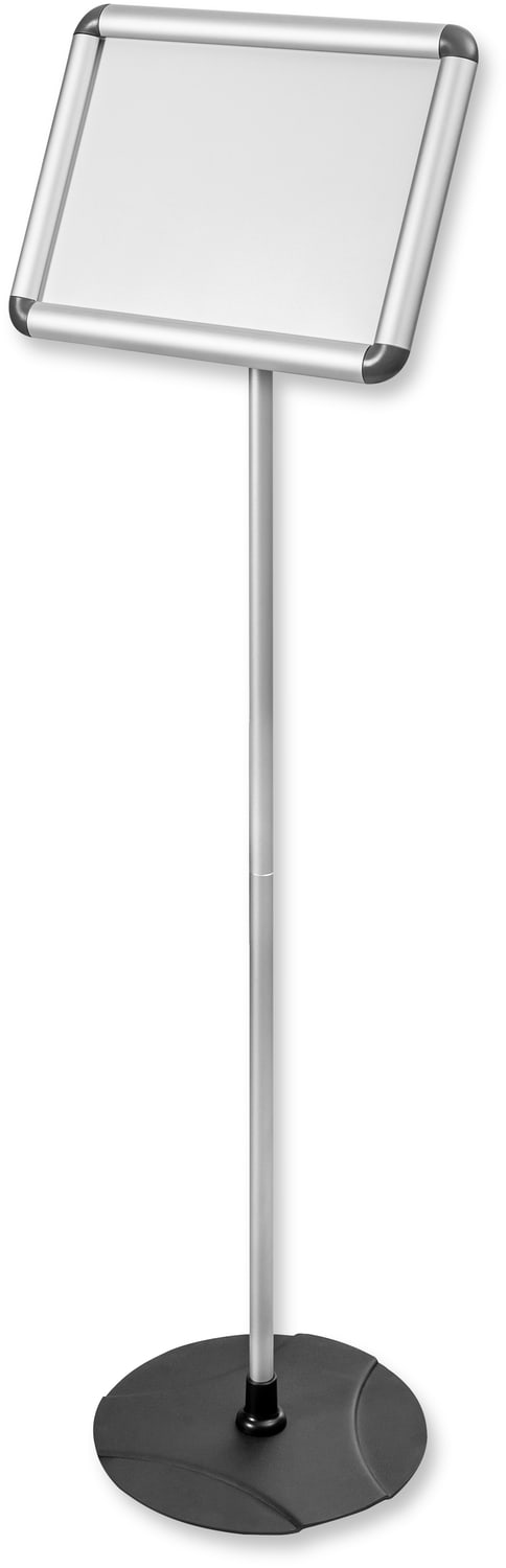Eleganter, leichter und sehr stabiler Ständer mit verstellbarem Rahmenwinkel. Das Produkt ist ideal für die Präsentation von Informationen oder Speisekarten.