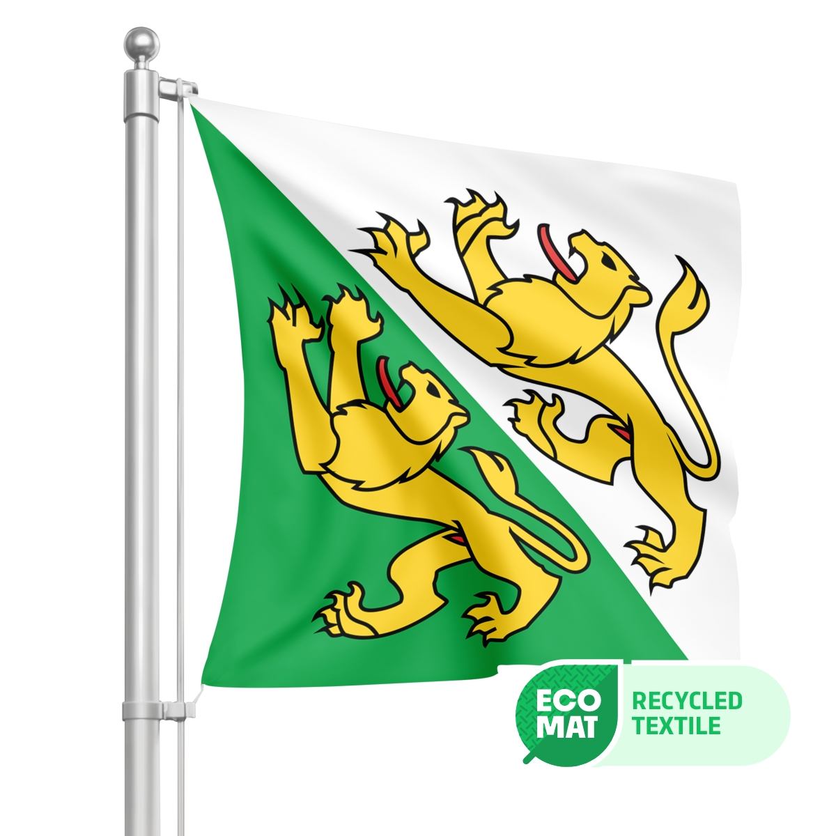 Unsere ECO-Fahnen bestehen aus umweltfreundlichem Fahnenstoff, der zu 100% aus recycelten PET-Flaschen gefertigt wird. Diese nachhaltigen Fahnen sind in den Grössen 80x80cm, 100x100cm, 120x120cm, 150x150cm, 200x200cm, 250x250cm und 300x300cm erhältlich und bieten eine hervorragende Druckqualität, die auf beiden Seiten sichtbar ist (Spiegeleffekt).