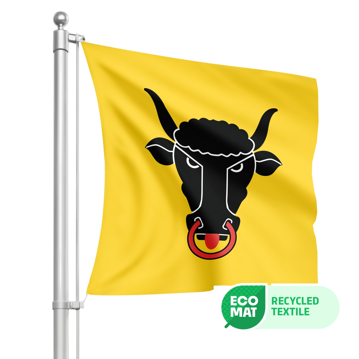 Unsere ECO-Fahnen bestehen aus umweltfreundlichem Fahnenstoff, der zu 100% aus recycelten PET-Flaschen gefertigt wird. Diese nachhaltigen Fahnen sind in den Grössen 80x80cm, 100x100cm, 120x120cm, 150x150cm, 200x200cm, 250x250cm und 300x300cm erhältlich und bieten eine hervorragende Druckqualität, die auf beiden Seiten sichtbar ist (Spiegeleffekt).