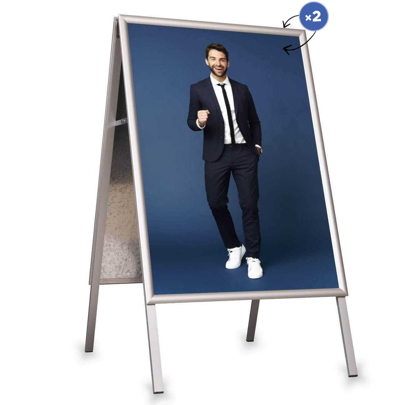 Ein, in vielen Märkten, anerkannter und sehr beliebter Kundenstopper “Aurora”. Das vorgestellte Produkt ist eine außergewöhnlich langlebige und solide Konstruktion, die komplett aus Metall gefertigt ist. Auch die Rückseite des Stoppers besteht aus einer verzinkten Stahlplatte. Dies ermöglicht den Einsatz des Stoppers im Freien, jedoch unter eingeschränkten Windverhältnissen. Das Poster wird als Schnappverschluss-Rahmen aufgerastet. Die dicke Hülle, die das Plakat bedeckt, hat einen UV-Filter, der den Ausdruck vor Farbverlusten unter dem Einfluss von Sonnenlicht schützt. Rahmenprofil: 25 mm. Dieses Set enthält: Kundenstopper Aurora in einer individuellen Box.Größe/Format: A1 (594x841 mm)Gewicht des Produktes: 9 kgEinzelverpackungsabmessungen: 117x66x8 cmArtikel Nummer: 5907451662151Produktnummer des Herstellers:5907451662151