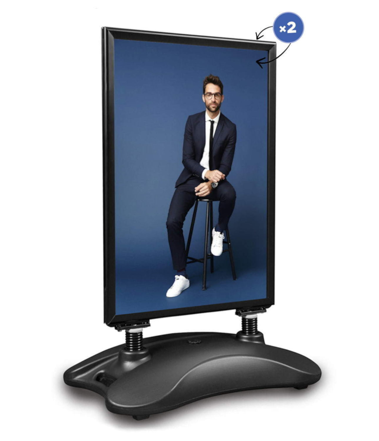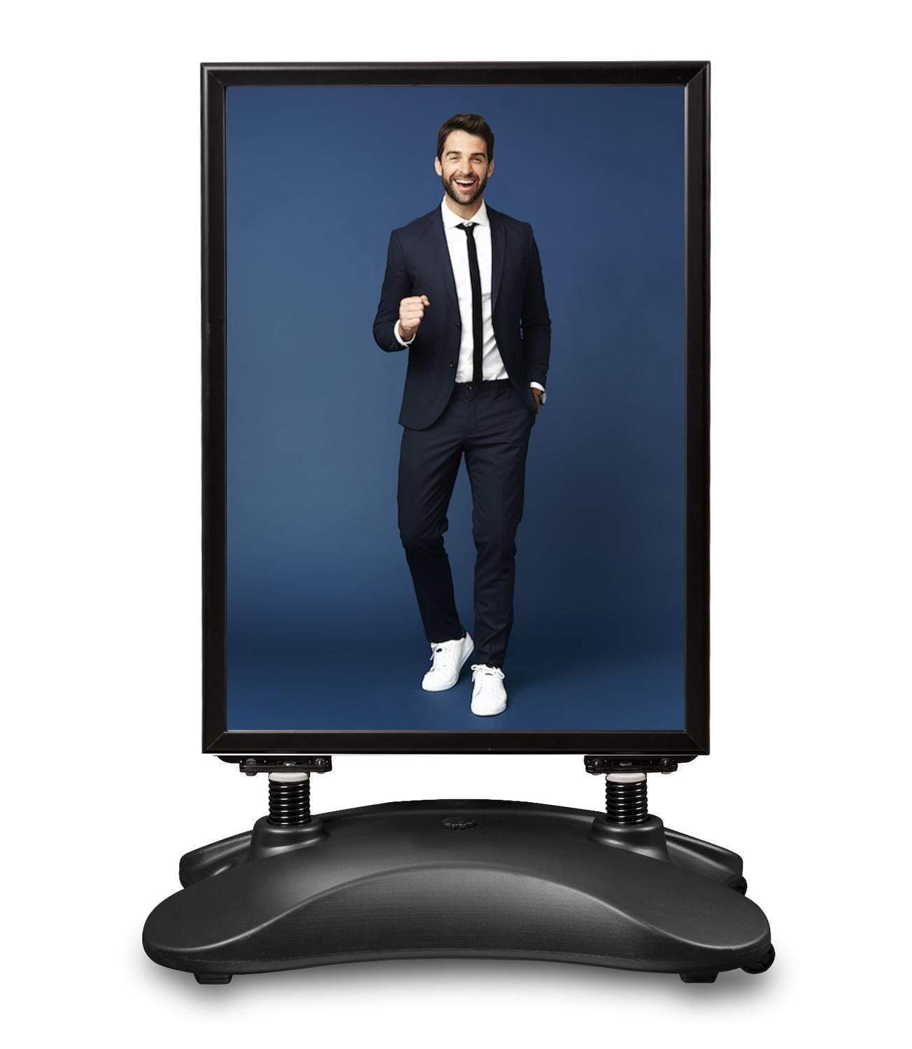 Definitiv der beliebteste Kundenstopper für draussen. Der Rahmen ist auf Federn gelagert, so dass sich der Passantenstopper der Windkraft anpasst. Die Basis ist ein Wassertank. Nach dem Befüllen wird der Kundenstopper sehr schwer. Seine Handhabung ist dank des Griffs und der im Sockel montierten Räder möglich. Das Poster wird als Schnappverschluss-Rahmen aufgerastet. Die dicke Hülle, die das Plakat bedeckt, hat einen UV-Filter, der den Ausdruck vor Farbverlusten unter dem Einfluss von Sonnenlicht schützt. Rahmenprofil: 32 mm. Dieses Set enthält: Hampton-Kundenstopper verpackt in zwei separaten Boxen.Grösse/Format: B2 (500x707 mm)Gewicht des Produktes: 13 kg (6 kg+7 kg)Einzelverpackungsabmessungen: 6x45x60 cm+18x52x83 cmArtikel Nummer: 5907451665756Produktnummer des Herstellers: 5907451665756