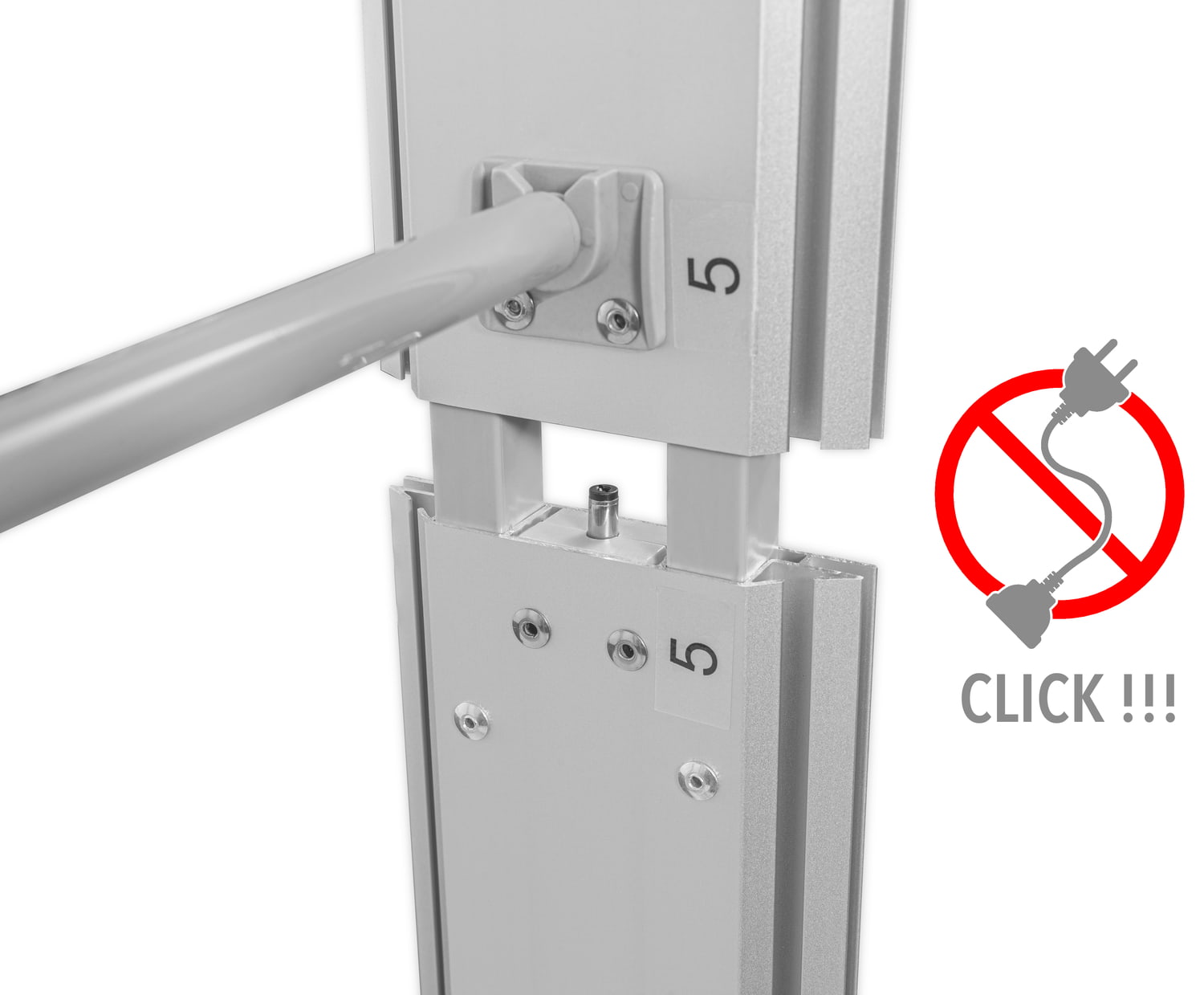 - Mittelstange einsetzen, Netzteil anschließen (24 V).