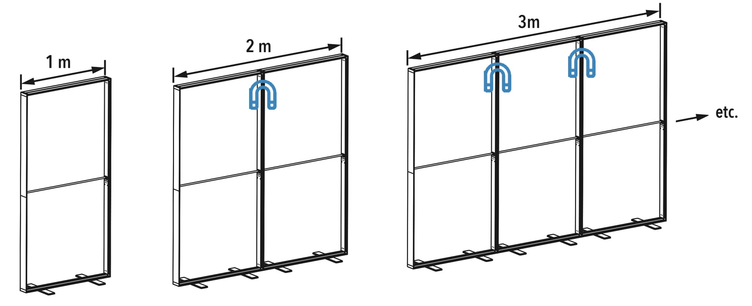 - Modular: magnetisch koppelbar als Reihen-, L- oder U-Form.