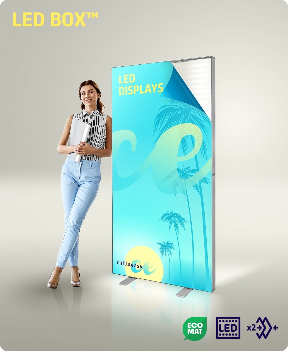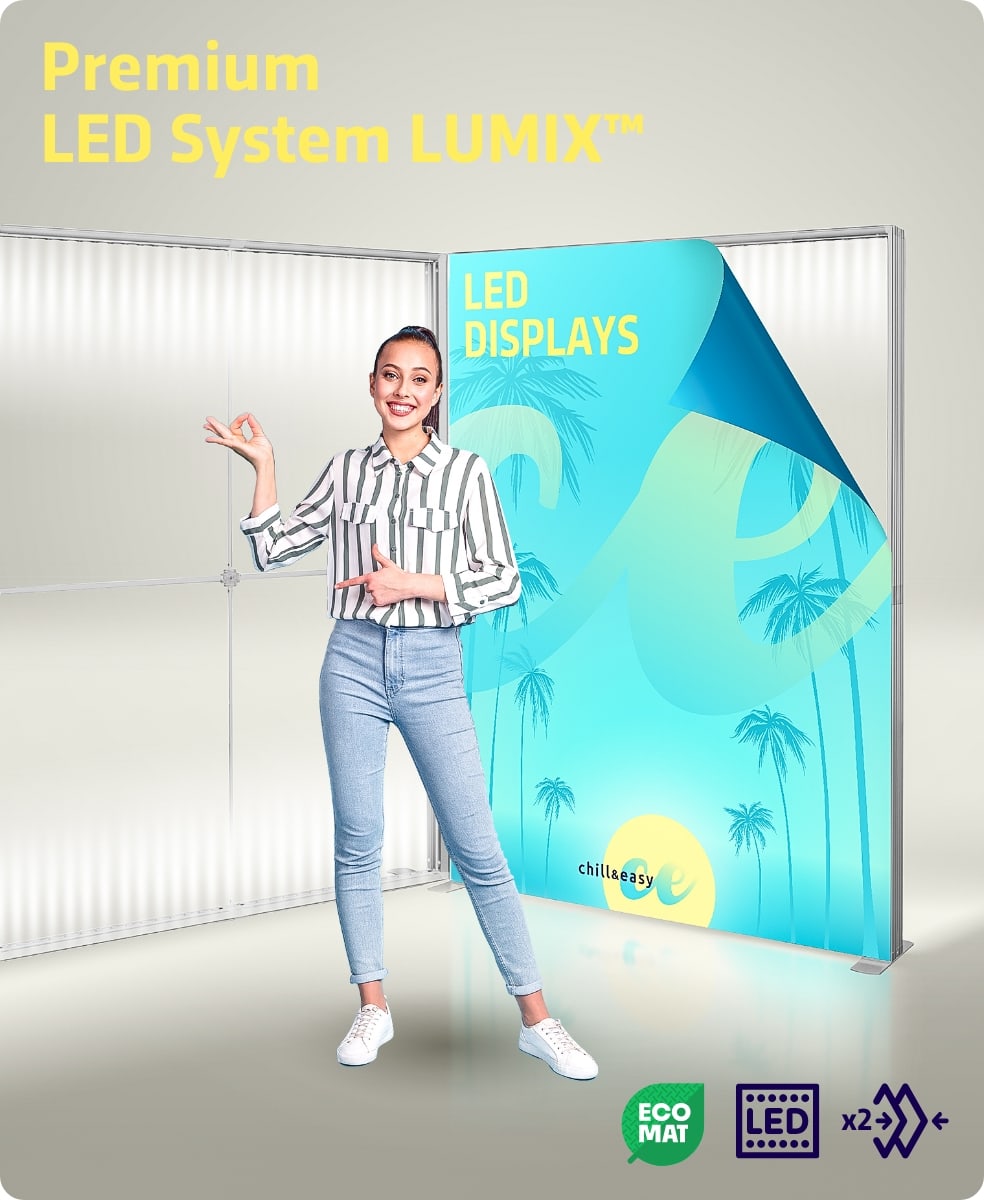 - Praxisgerecht: geeignet für hinterleuchtete Textilien (Backlit) in der LED Messewand BOX™.