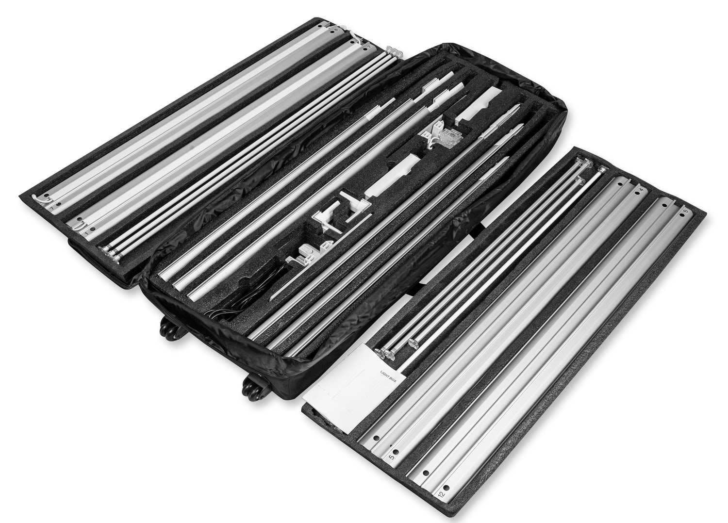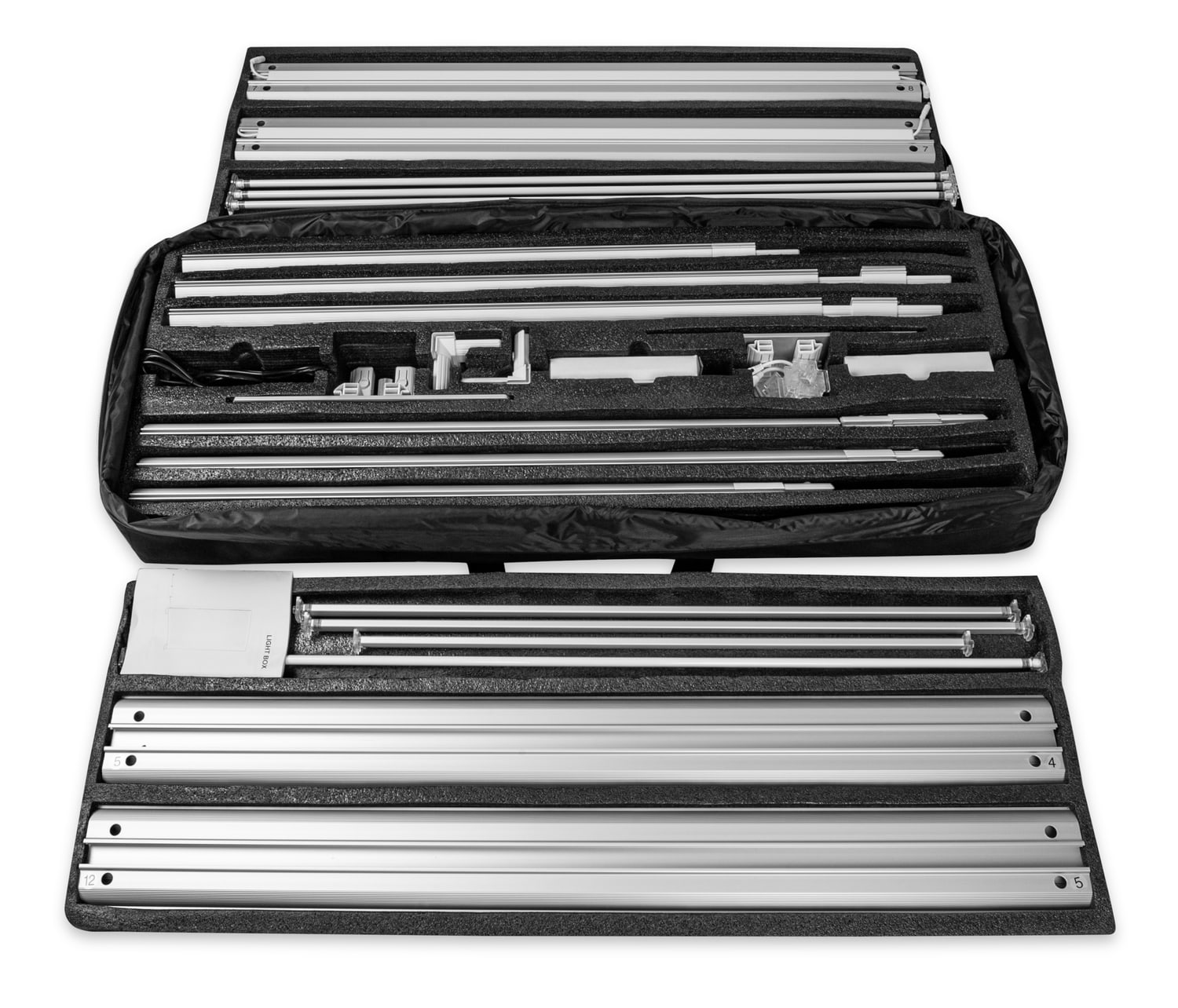 LUMIX™ System 285×250, Netzteil (2 Stück), Tasche auf Rädern, individuell bedruckte Banner (falls bestellt).