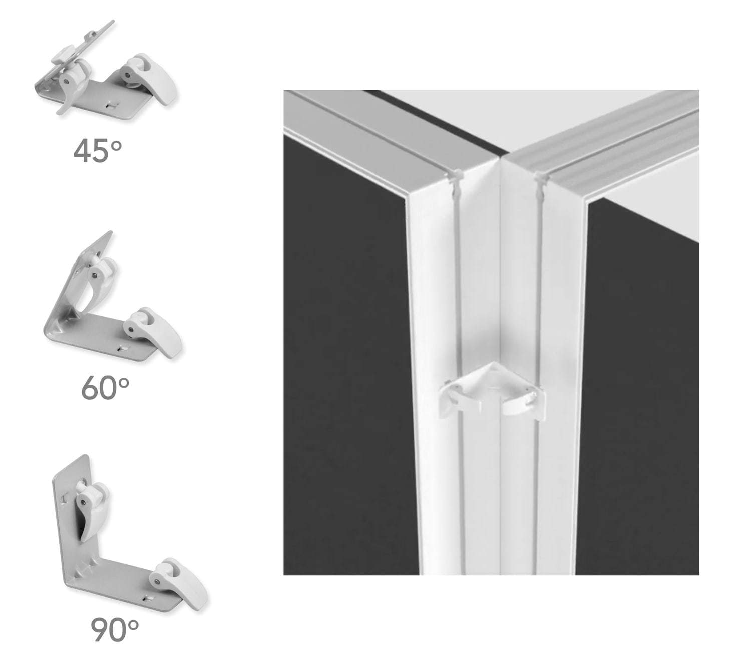 Doppelseitige, auffällige Konstruktion Stabiler Aluminiumrahmen Werkzeuglose Montage Möglichkeit der Erweiterung der Wände oder der Schaffung einzigartiger Messegebäude