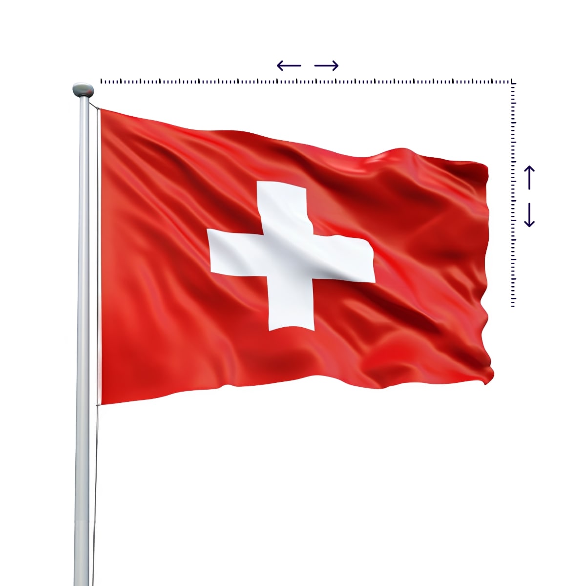 Schweizer Fahne aus winddurchlässigem AIR-Gewebe in individueller Grösse. Ideal für windige Standorte. Jetzt in Wunschgrösse & Konfektion online bestellen!