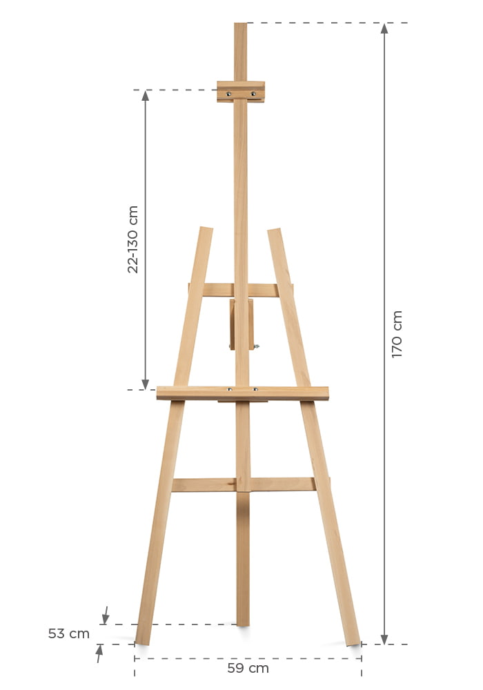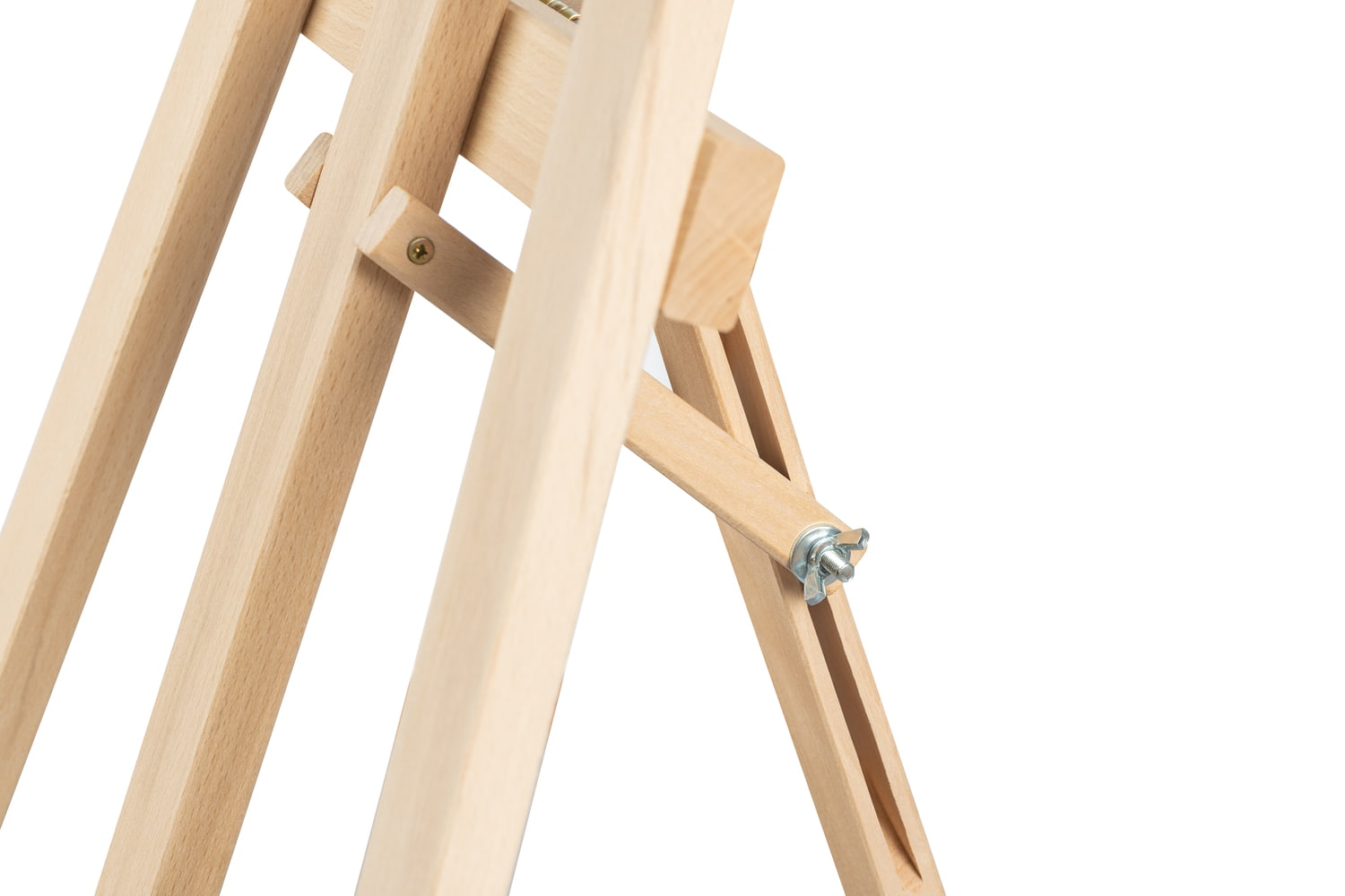 Eine Staffelei aus Holz mit einer sehr stabilen und dennoch leichten Konstruktion. Jedes Element wurde aus einem einzigen Stück Buchenholz gefertigt, was die hohe Qualität des Produkts garantiert.