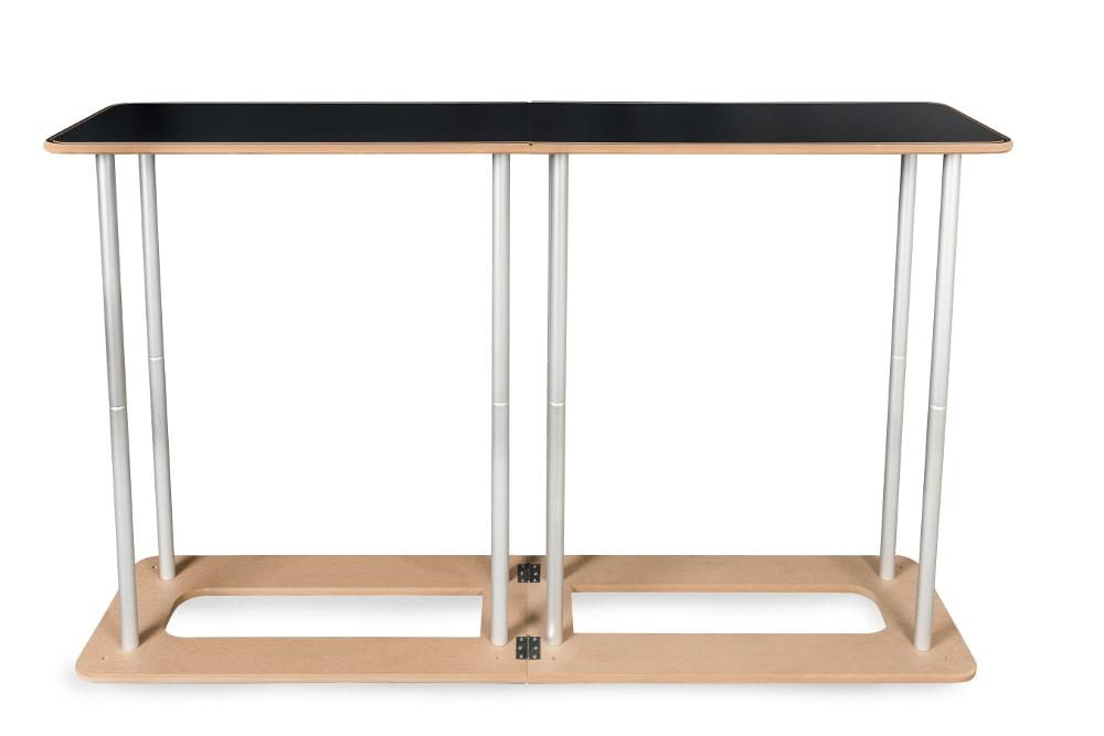 Die Verwendung von Stoff als Grafikträger ermöglicht es, den Druck zu beleuchten und die Aufmerksamkeit der Passanten effektiv auf sich zu ziehen. Die Montage der Grafik mit Silikonband dauert buchstäblich nur Sekunden. Die Holzplatte und der Holzsockel sowie die "Beine" aus Metall garantieren Stabilität und eine lange Lebensdauer des Produkts. Durch die geringe Größe der Theke im zusammengeklappten Zustand lässt sich das gesamte System leicht transportieren und lagern.